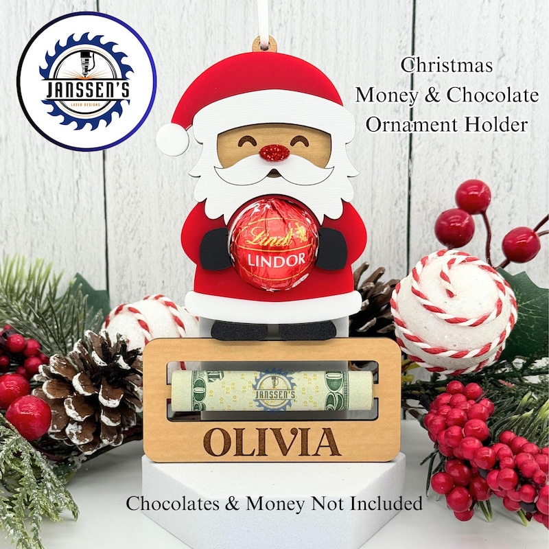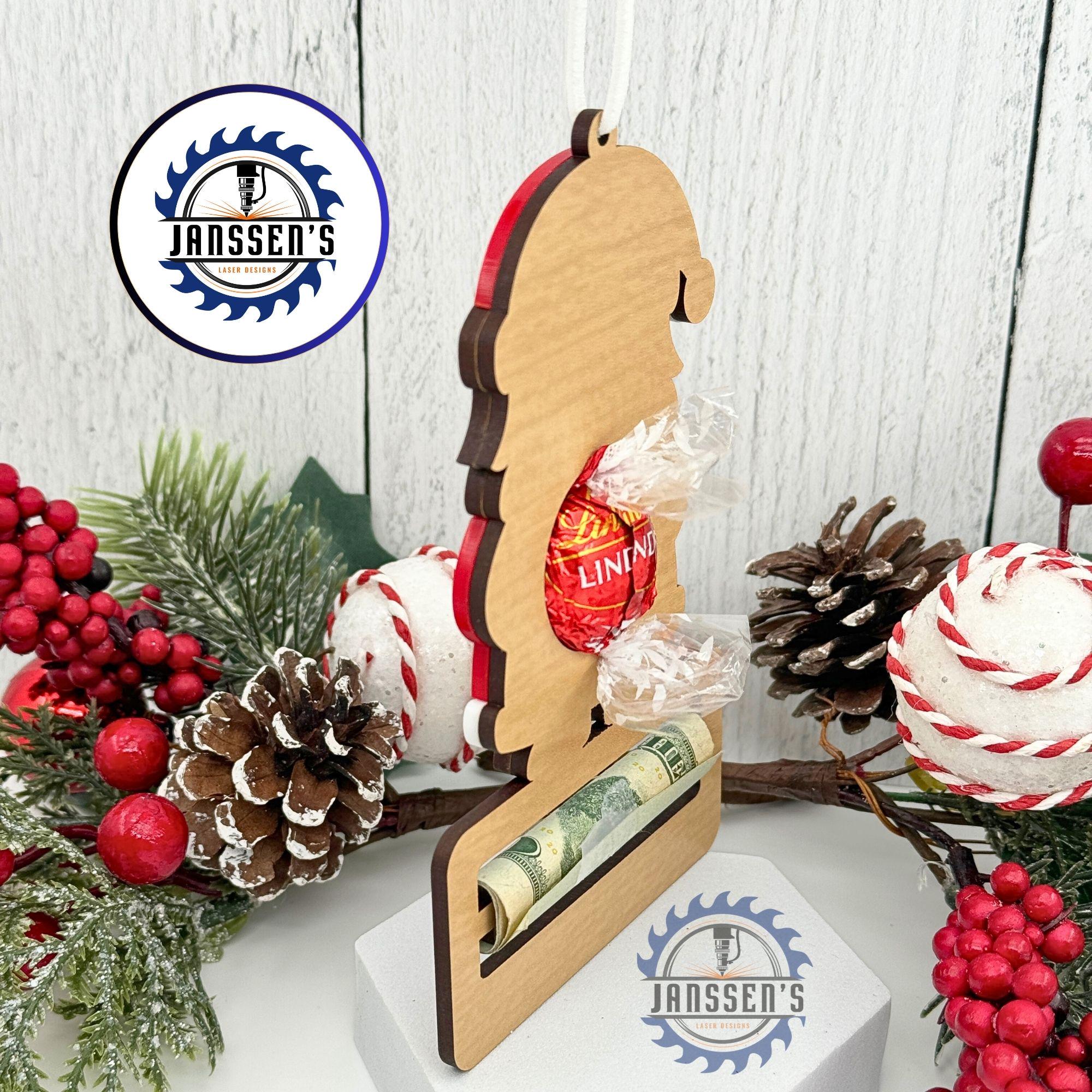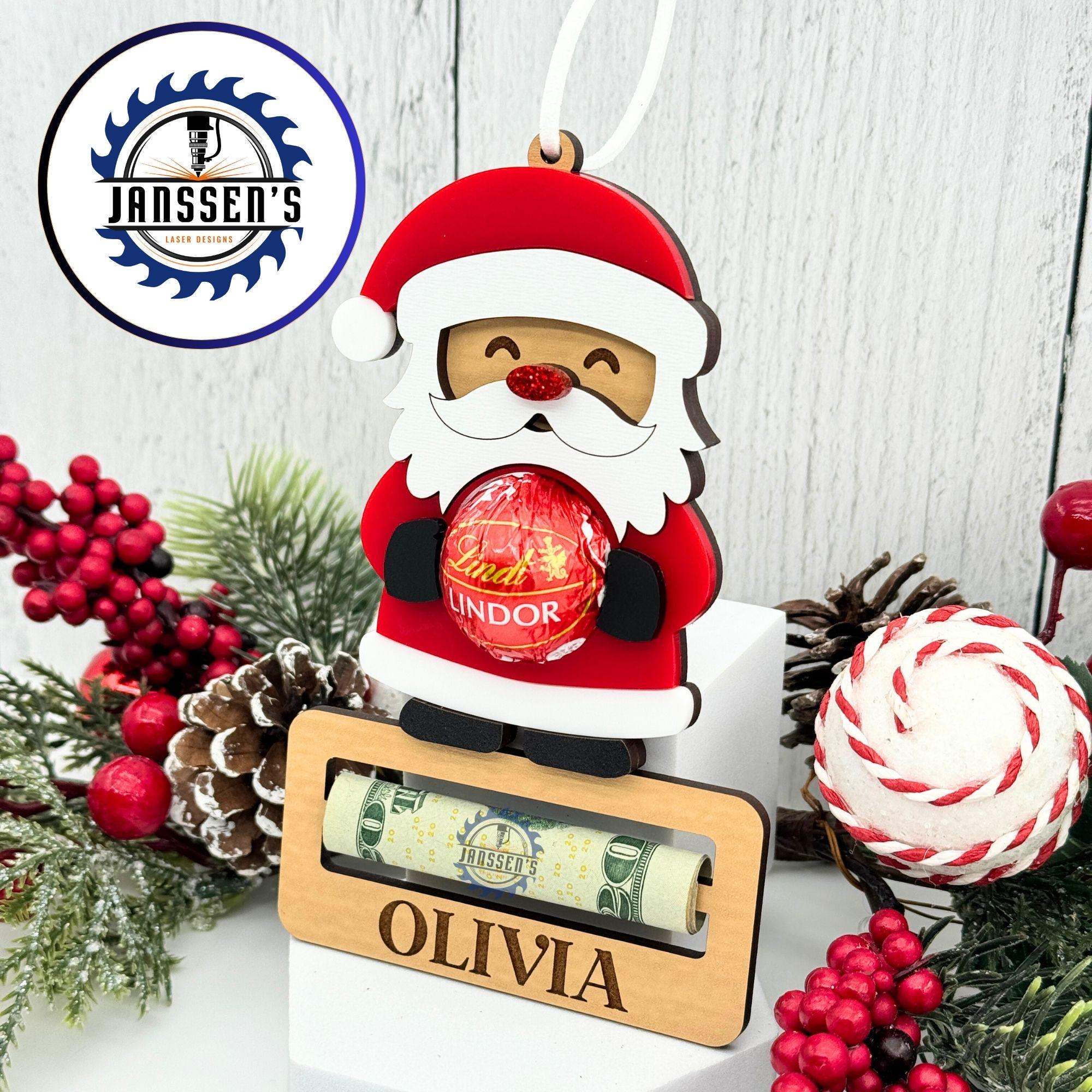 You can personalize the bottom with a name or festive message, making it extra unique. Perfect for kids, co-workers, friends, and family, this Santa Chocolate Money Holder Ornament adds a personal touch to your holiday gifting!